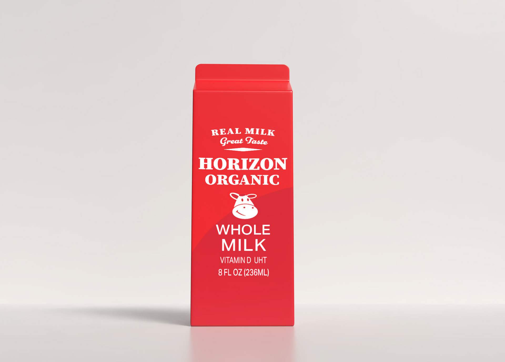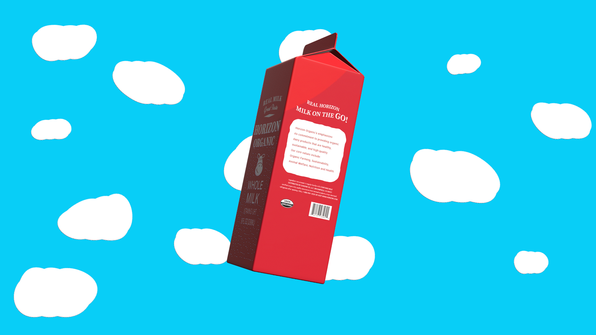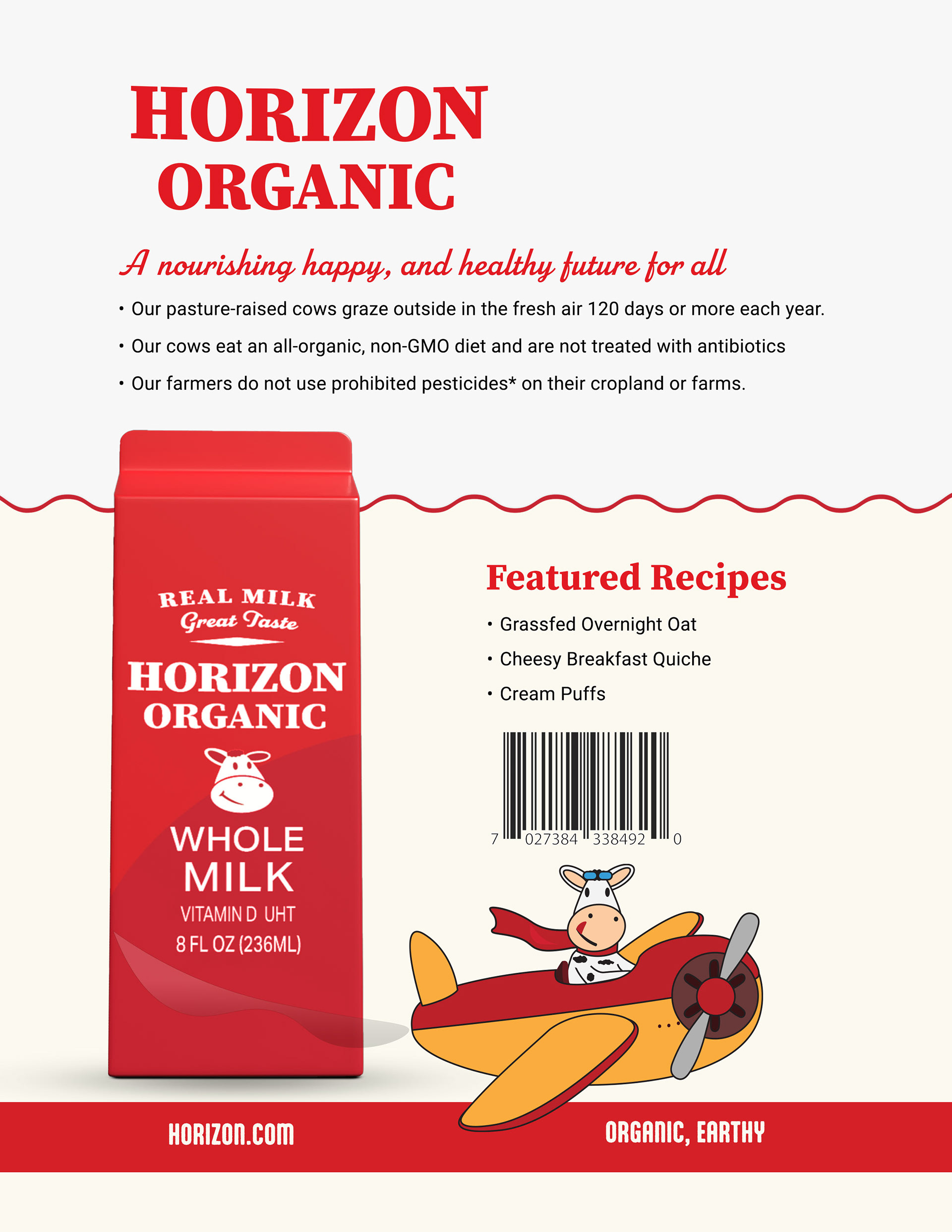 I recreated one of the Horizon products because the package was crowded in front view. So, I decided to make their package in type-based design. I also resized the cow differently on the style sheet from their original package.