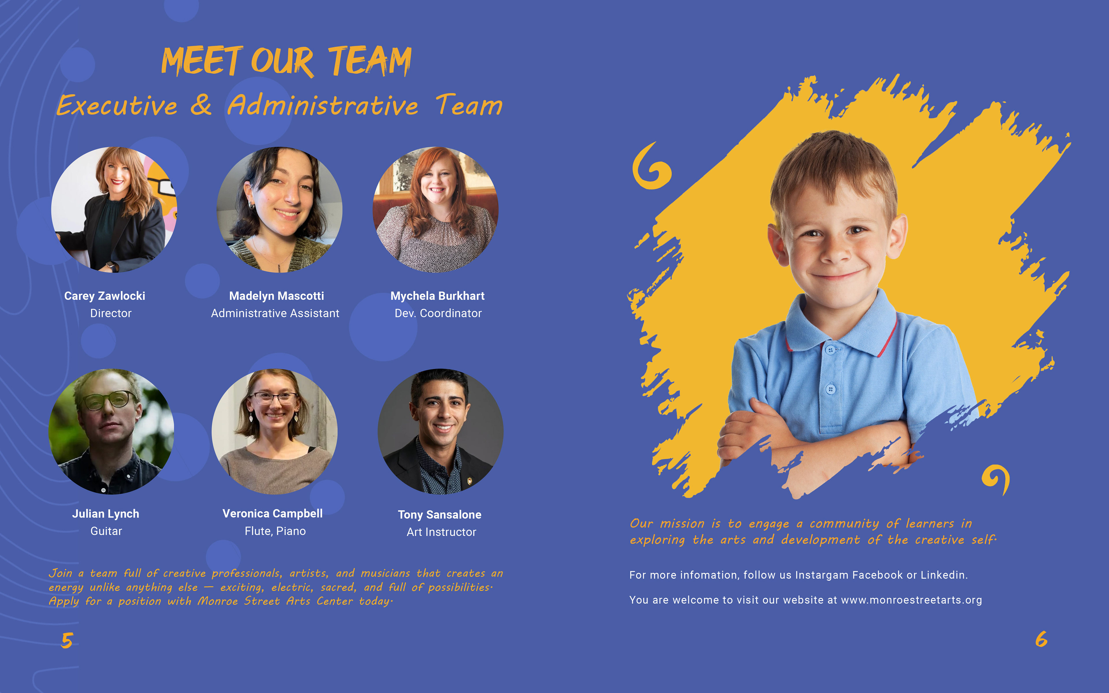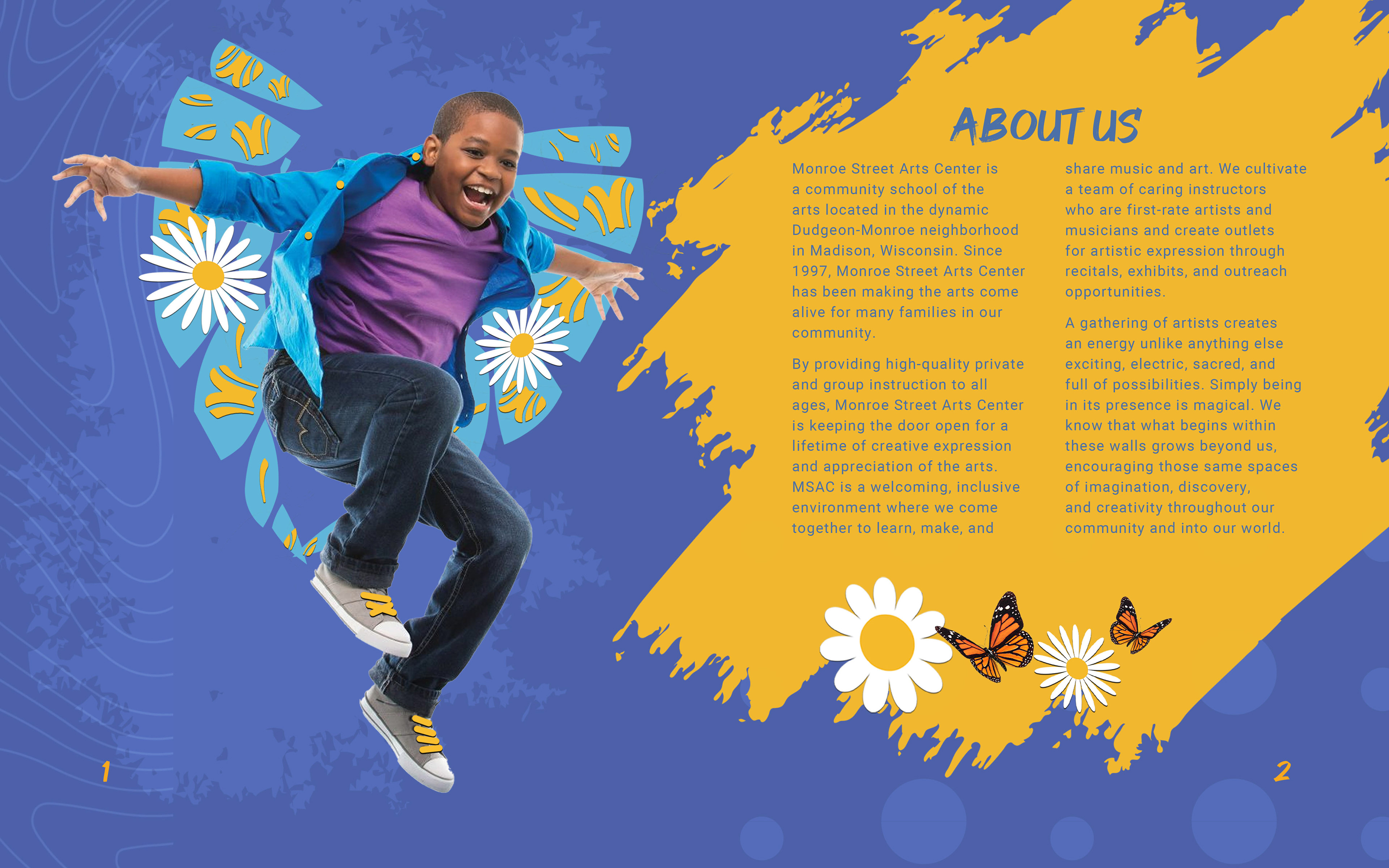 I made a broacher for Monroe Street Arts Center in WI. The Idea of making this project is to advertise their services and activities that they offer.